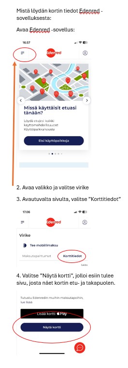 Edenred -kortti (katso tästä ohje, mistä löydät korttitiedot mobiiliapista)